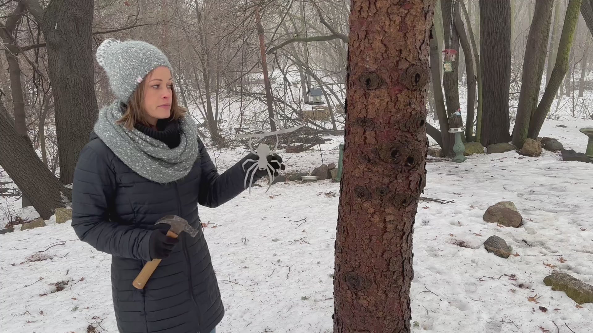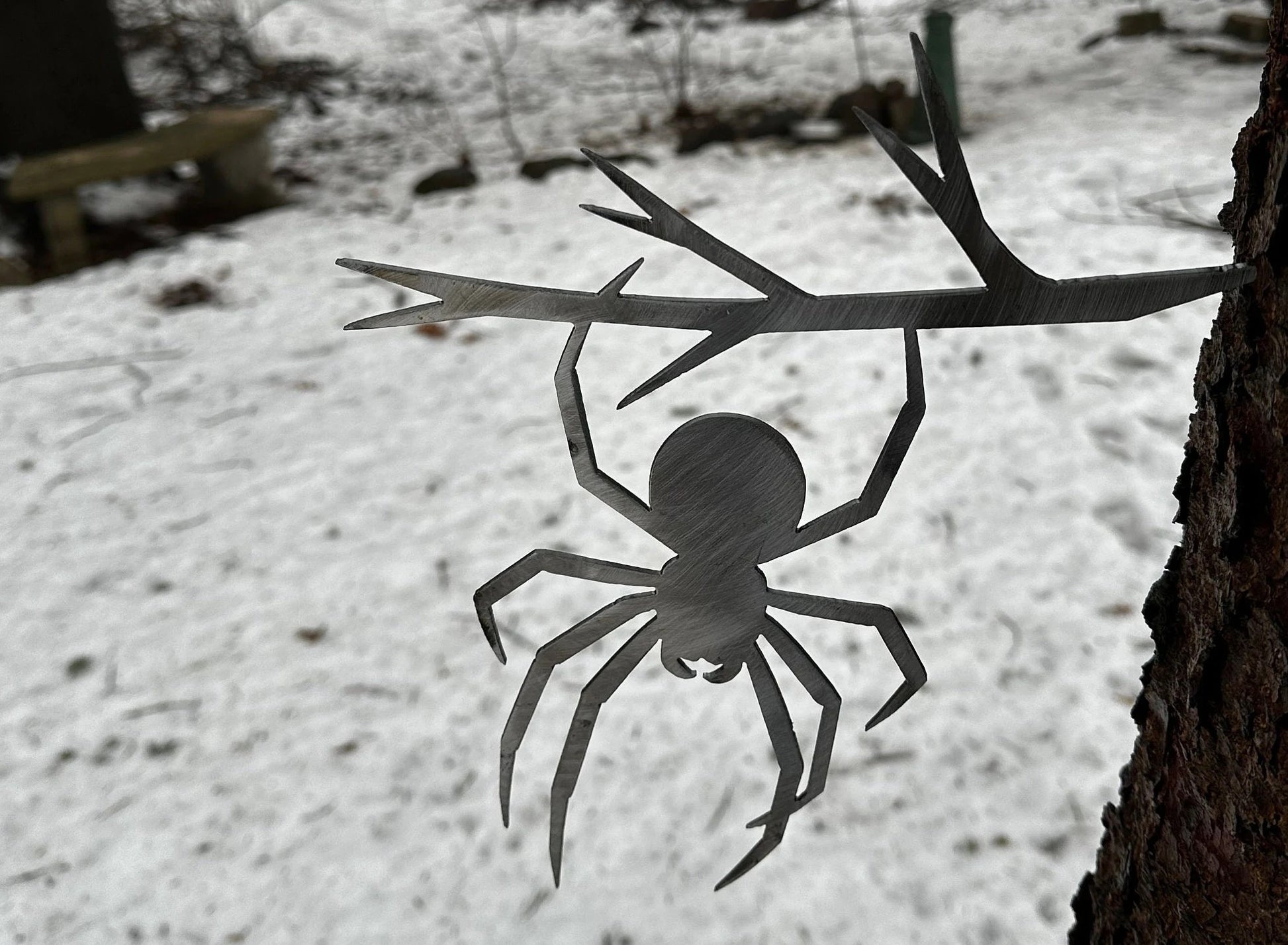 The Spider is 12 inches tall and 10 inches wide, including the branch.