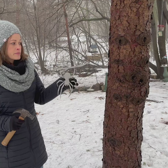 The Metal tree art is made to be hammered into a tree or wooden fence post. Our Metal tree art is made from heavy 10 gauge (1/8th inch) thick steel.